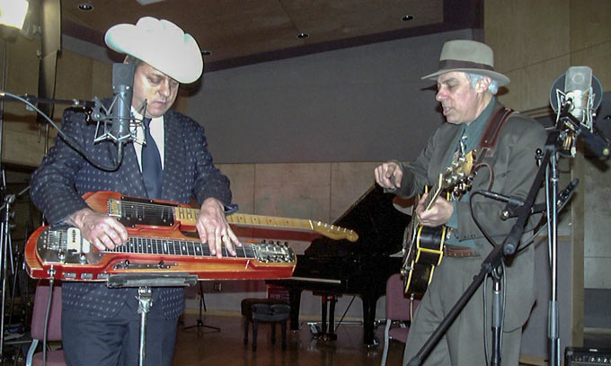 Fred Sokolow is a very versatile musician, singer and the author of many well-know guitar instructional books. His background traverses a musical language from underground rock, to bluegrass to tin pan alley. In this recording, he and his musicians play the music of the 20s through the 40s as well as some originals. Joined by the amazing Guit-Steel playing and singing of Junior Brown and the ukelele/accordian playing of Ian Whitcomb, Fred’s session was one of the most fun we’ve done so far.