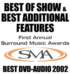 This disc was awarded the Surround Music Awards for Best of Show and Best Additional Features over other more “high profile artists” and eMedia magazine awarded Nitty Gritty Surround a Discus Award in 2002 calling this disc a clear winner! The reviews have lavished very high praise for the sound, the mixing and the performances on this DVD-Audio/Video titles. In fact, this is the disc that I play to convince other artists to get involved in our little label. It’s clearly a measure above standard commercial releases.